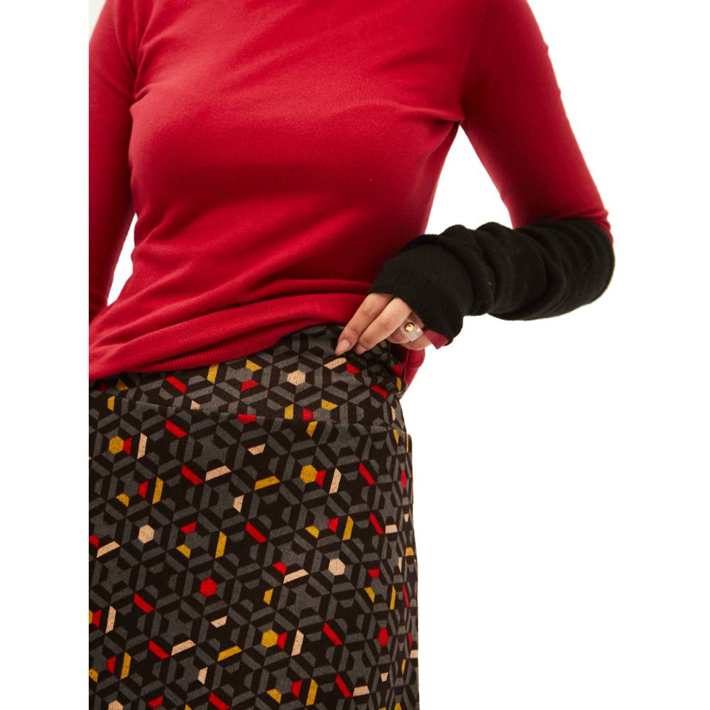Mini skirt with elastic waist in grey color and print colors from kaleidoscope.