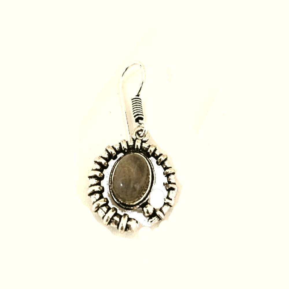 Pendant earrings with crescent design made of alpaca and labradorite stone