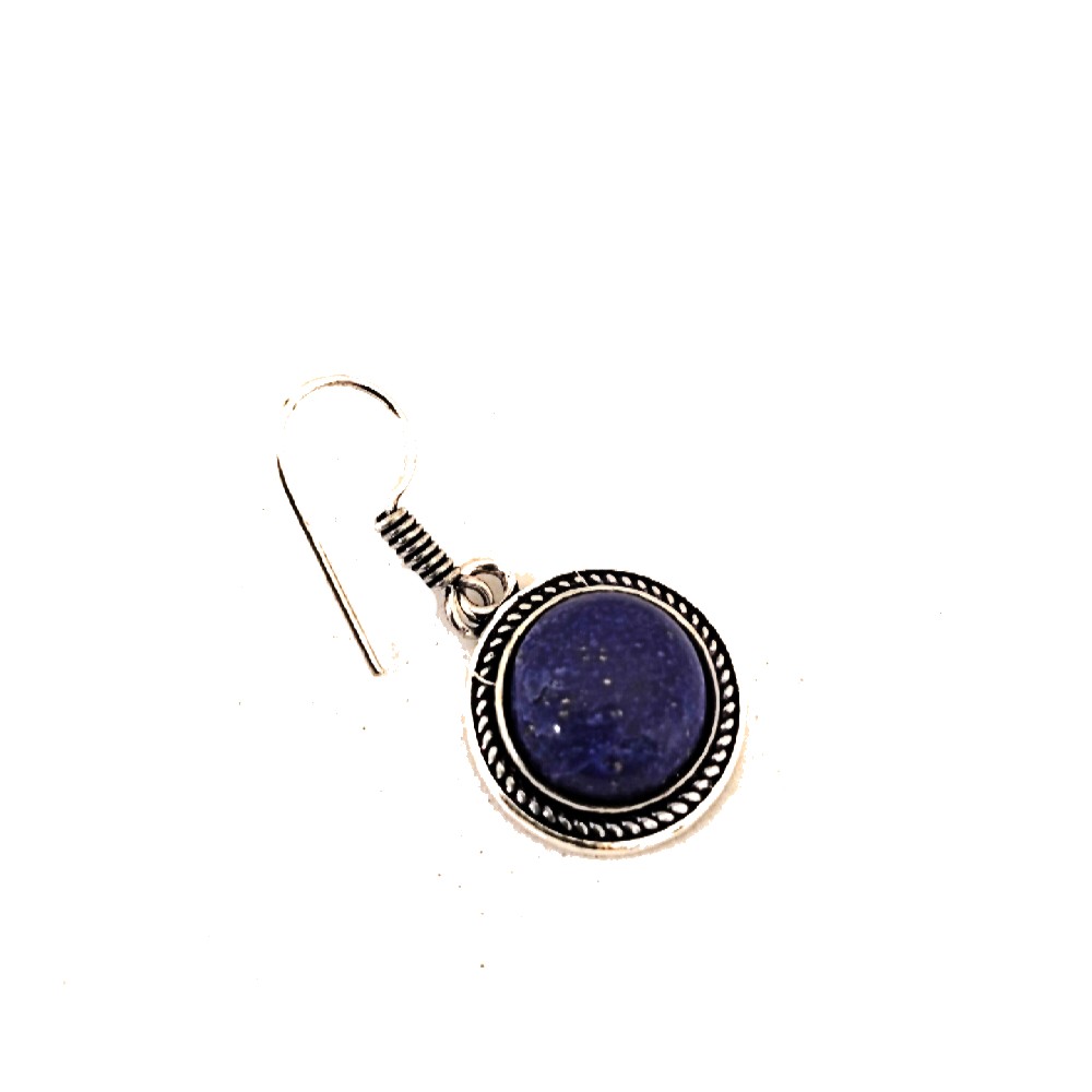 Earrings pendant with circle design made of alpaca and lapis stone