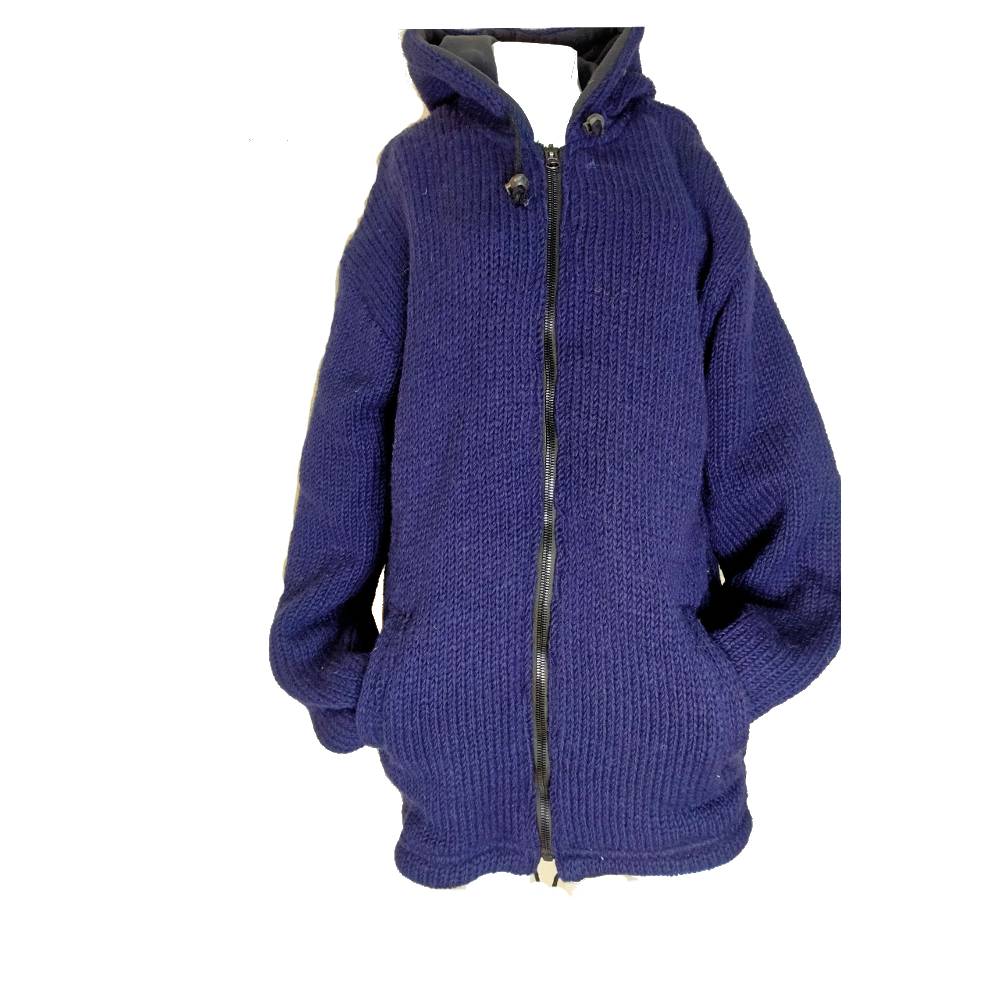 Μπουφάν ζακέτα από 100% μαλλί με επένδυση πολυεστέρα (φλις) σε υπέροχο μπλε χρώμα. Έχει ενσωματωμένη κουκούλα και δύο τσέπες εξωτερικά στα πλάγια. Κλείνει με φερμουάρ. Ταιριάζει σε κάθε στυλ. Φορέστε το σε μια χειμερινή εξόρμηση και απολαύστε την ζεστασιά του.
