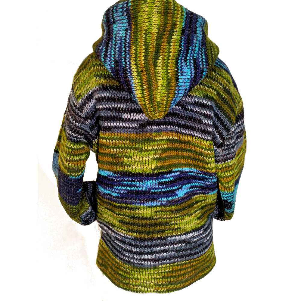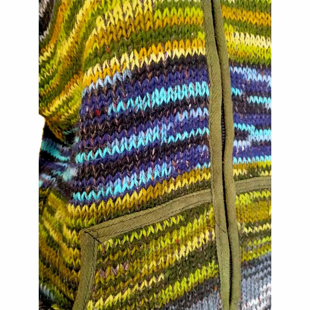 Μπουφάν ζακέτα χειροποίητο από 100% μαλλί με επένδυση πολυεστέρα Φλις σε πράσινη και μπλε απόχρωση.