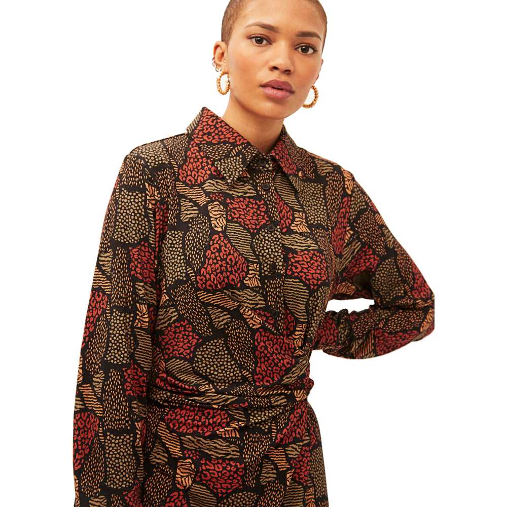 Brown texture ruched shirt dress.