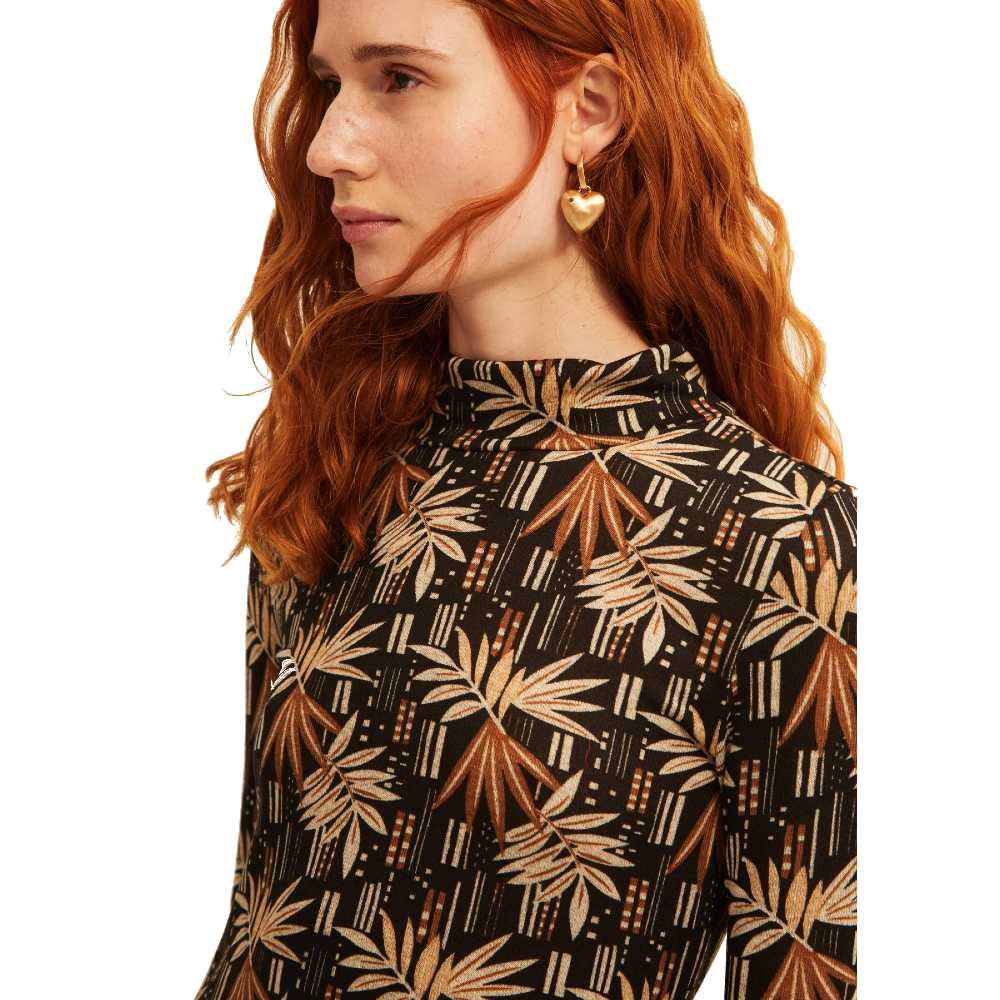 Φόρεμα μακρύ σε μαύρο χρώμα κλειστό λαιμό και άνοιγμα στο κάτω μέρος με τύπωμα φθινοπωρινά φύλλα.