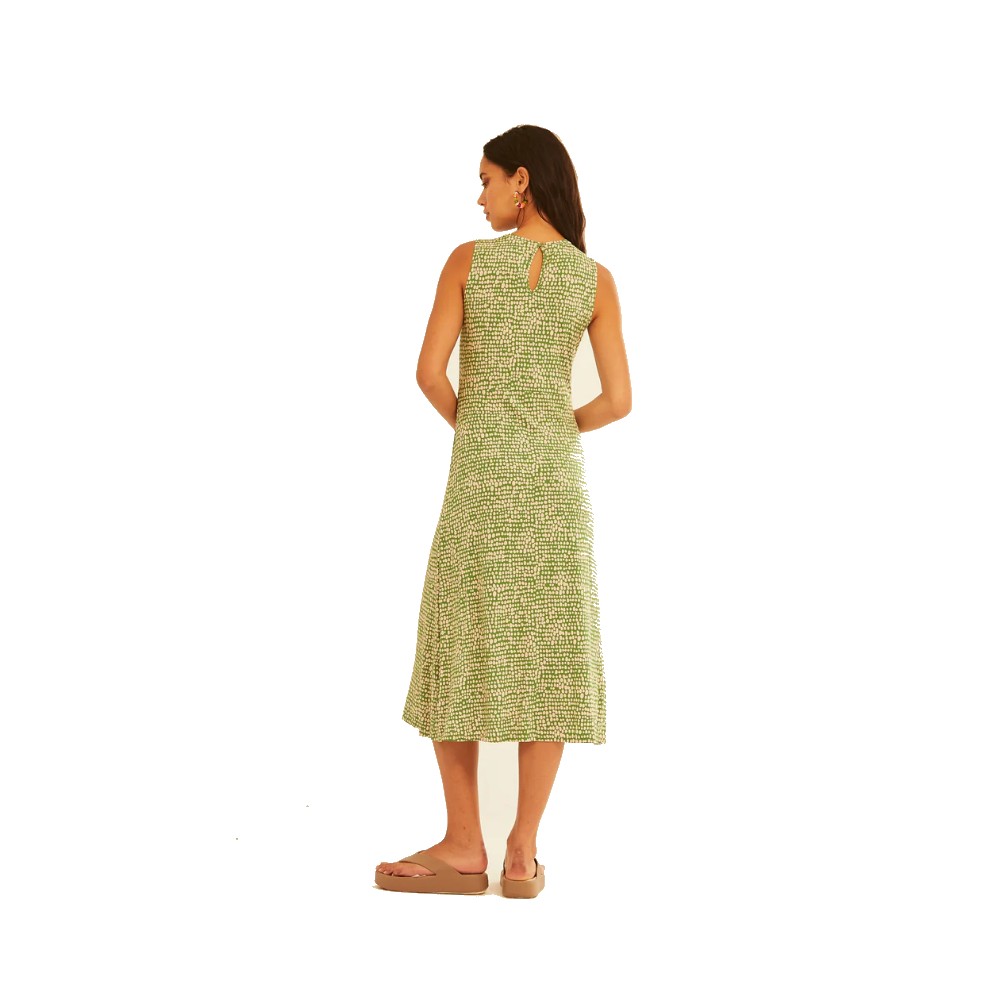 Μίντι ελαστικό φόρεμα με άνοιγμα στο μπροστινό μέρος σε υπέροχο πράσινο με λευκές πινελιές.