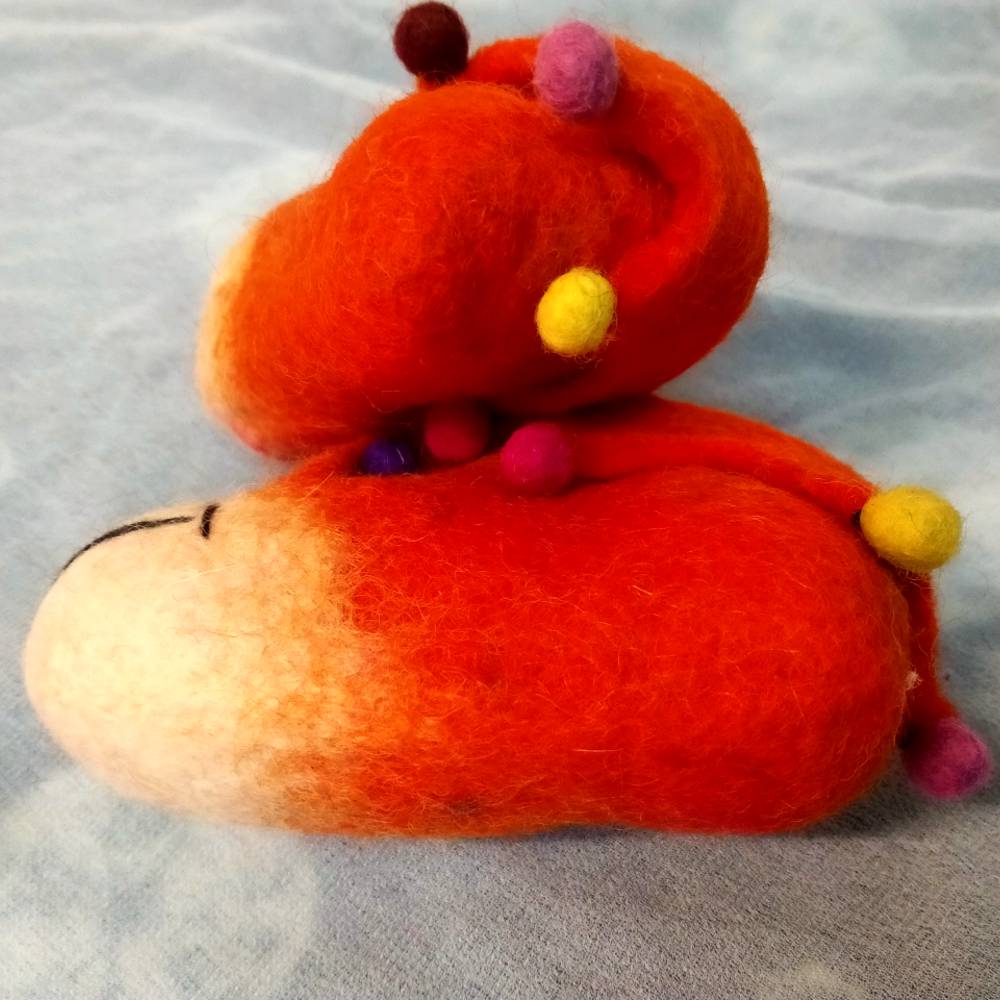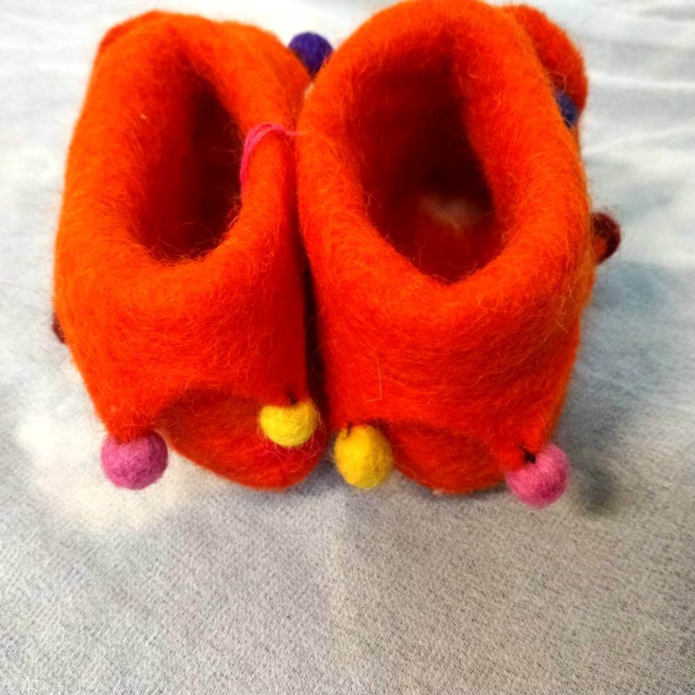 Παντοφλάκια baby με την τεχνική felting πορτοκαλί ποντικάκι