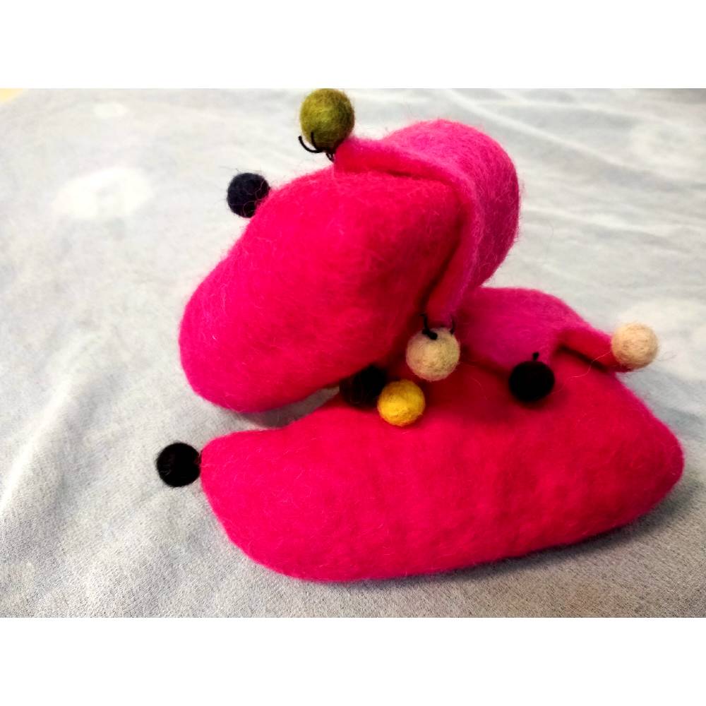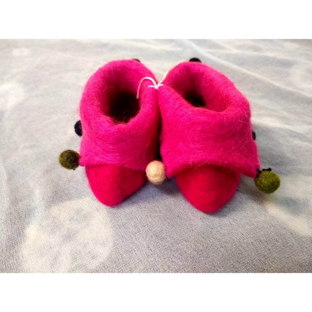 Παντοφλάκια Baby size τεχνικής felting Αλαντίν σε ρόζ χρώμα