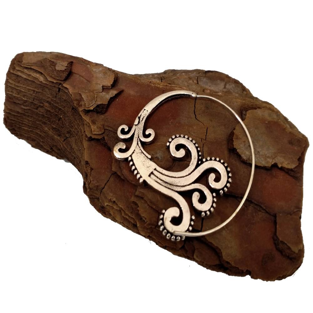 Σκουλαρίκια έθνικ στυλ από λευκό μπρούτζο (αλπακά) σχέδιο σπείρα με κλαδί. Συνδυάζονται εύκολα με κάθε λουκ.