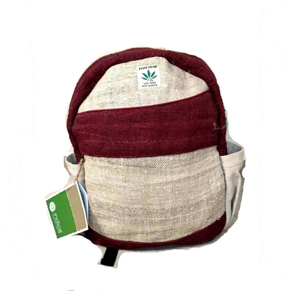 Τσάντα πλάτης μεγάλη από αγνή κλωστική κάνναβη σε μπέζ με μπορντώ χρώμα